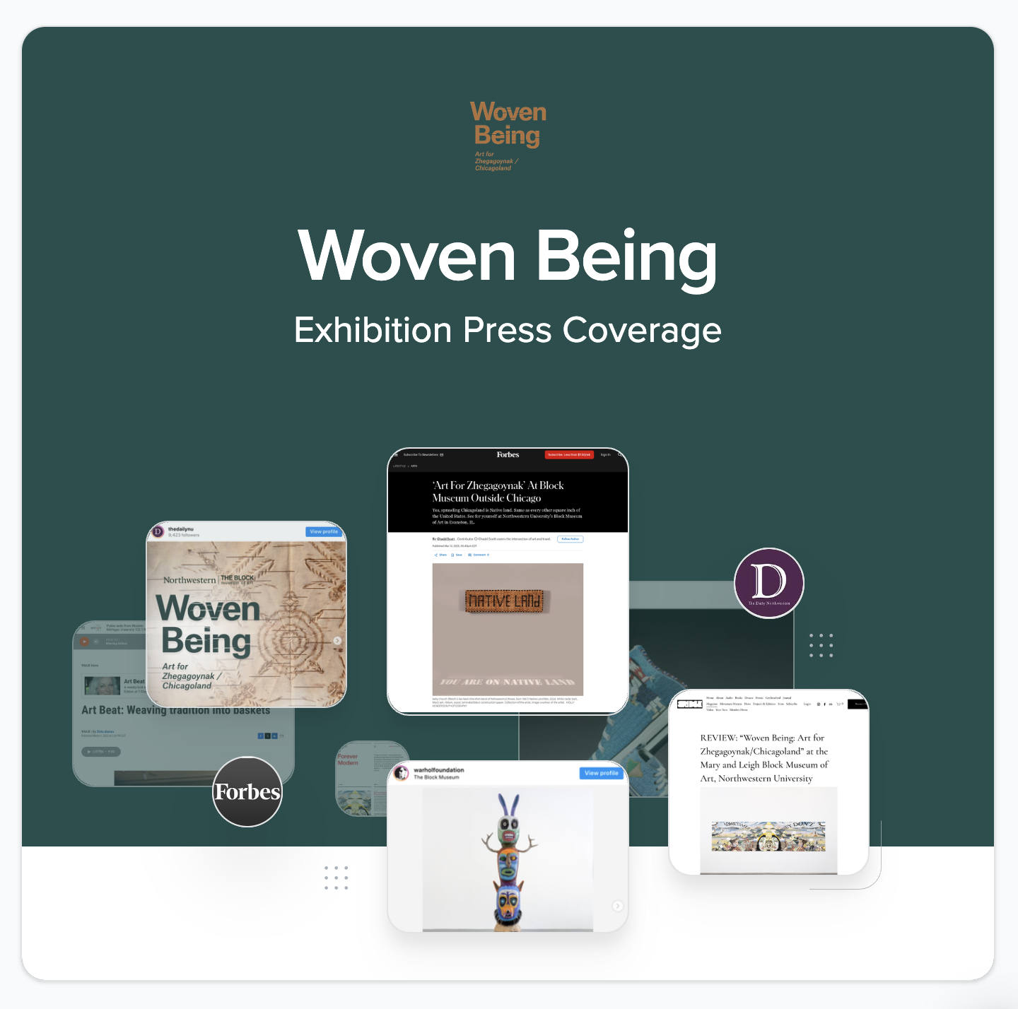 At Northwestern, we are grateful for the participation of the Center for Native American and Indigenous Research and its affiliates. We are also grateful for the participation of Indigenous knowledge sharers, including artists, community leaders, and scholars, and non-Indigenous allies, who are contributing to the exhibition process and to Woven Being’s presentation at Northwestern University.