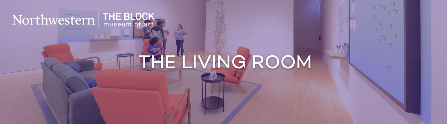 Each month, a new piece takes center stage—paired with prompts and reflections written by Block Museum Student Associates to spark curiosity and connection. Whether you’re studying, meeting a friend, or pausing between classes, The Living Room invites you to slow down, look closely, and make art part of your everyday.