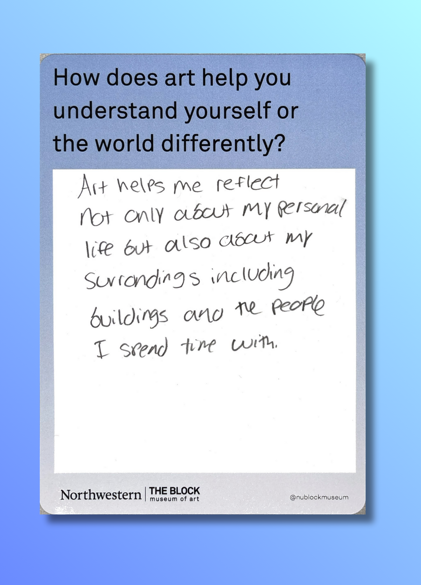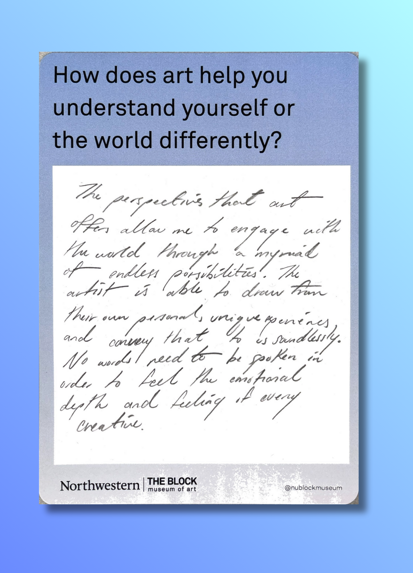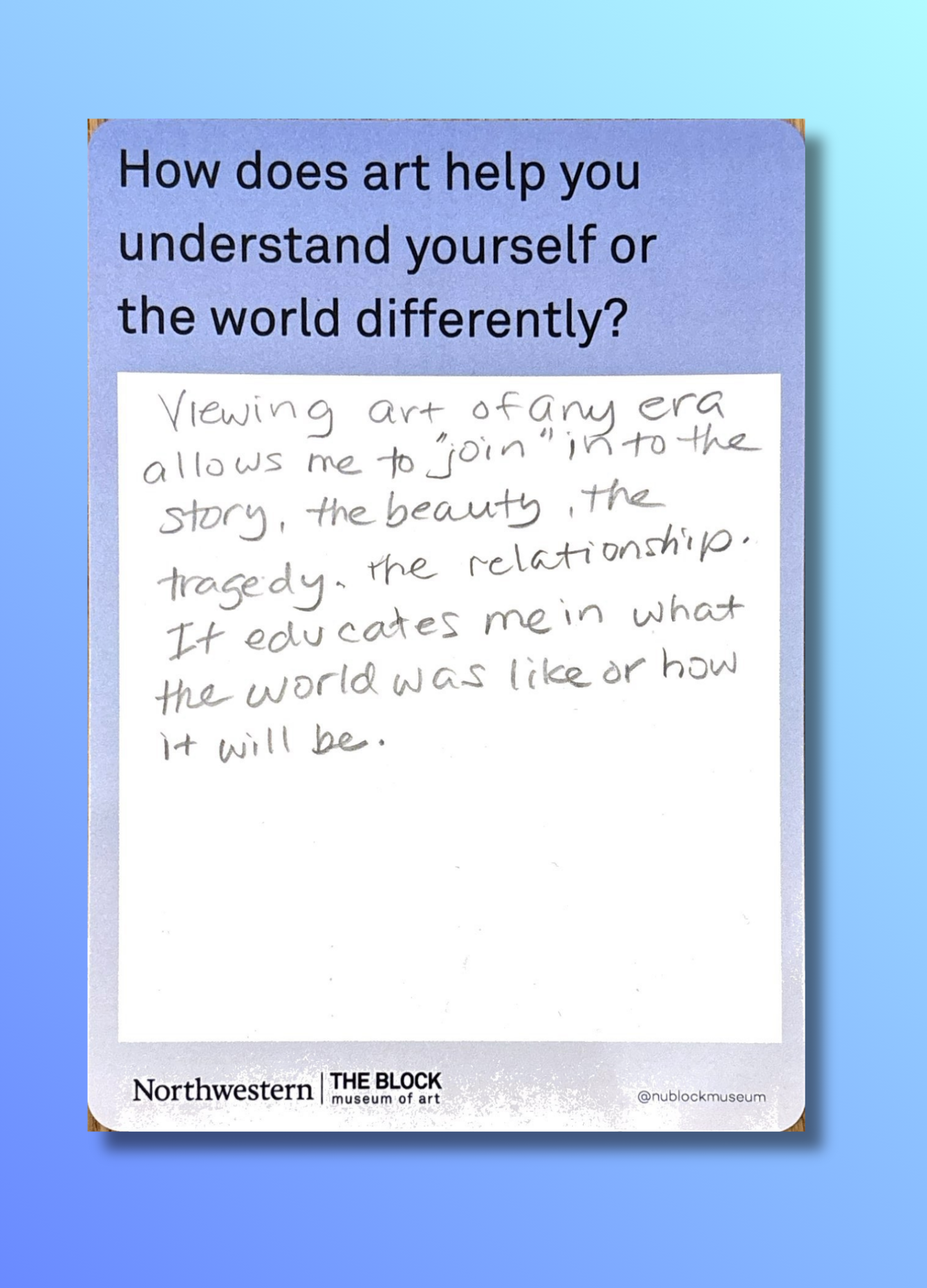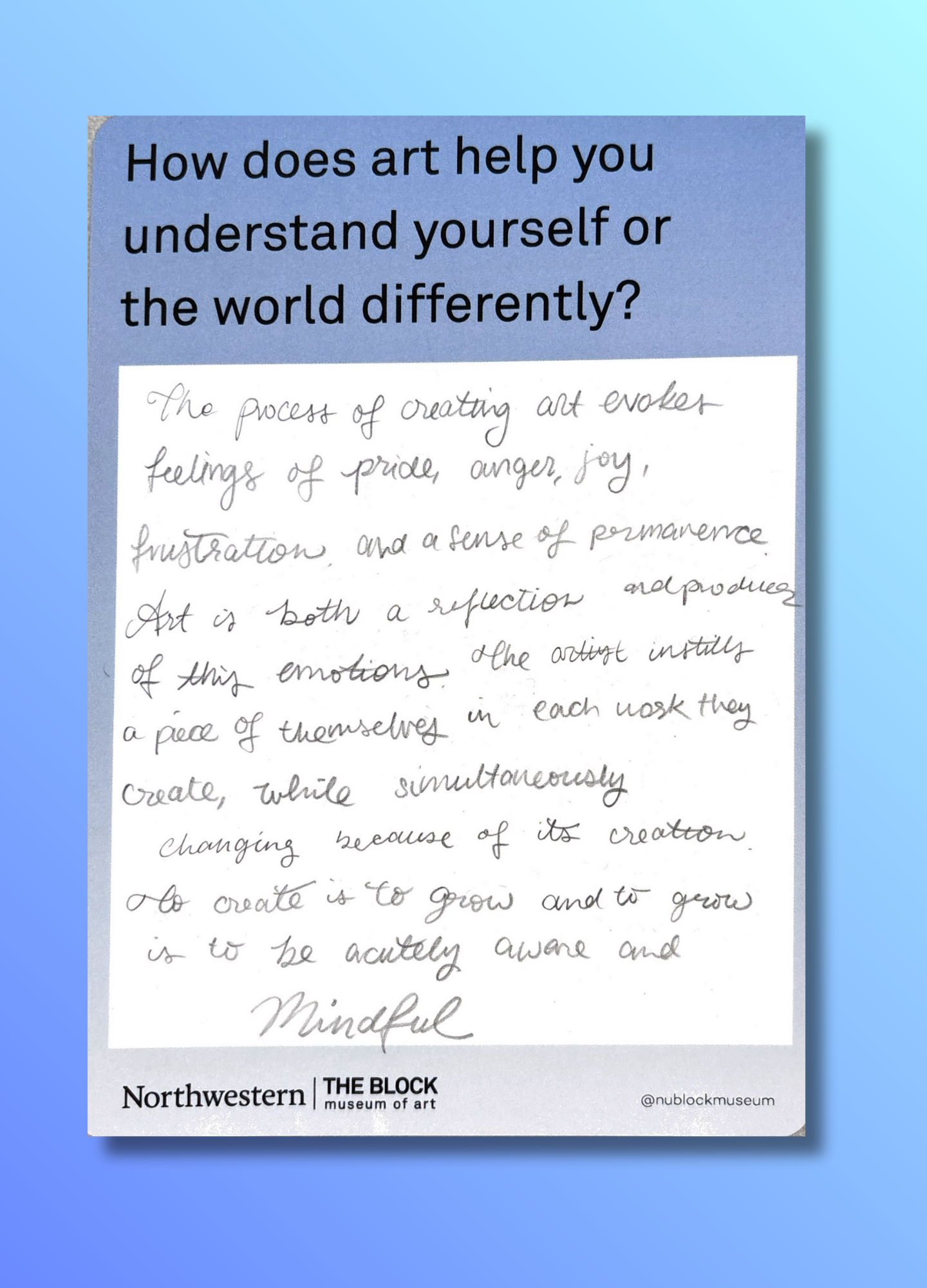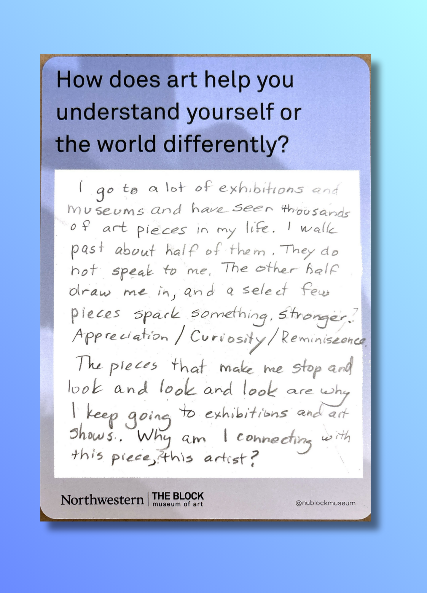 These reflections, gathered on the museum’s response wall, offer glimpses into how art shapes the ways we understand ourselves and our world.