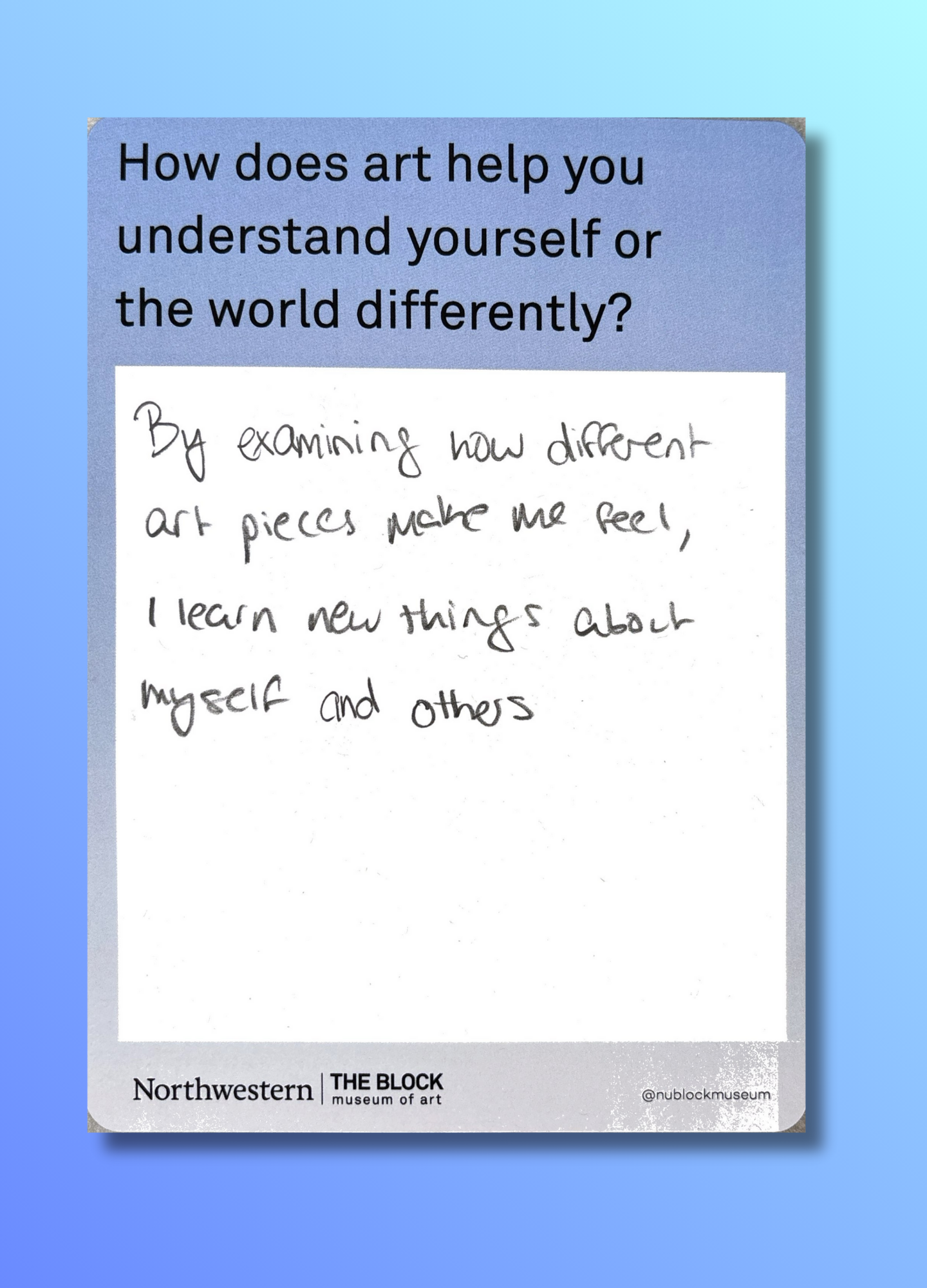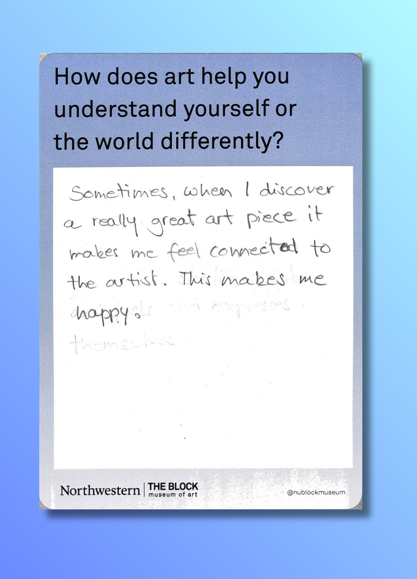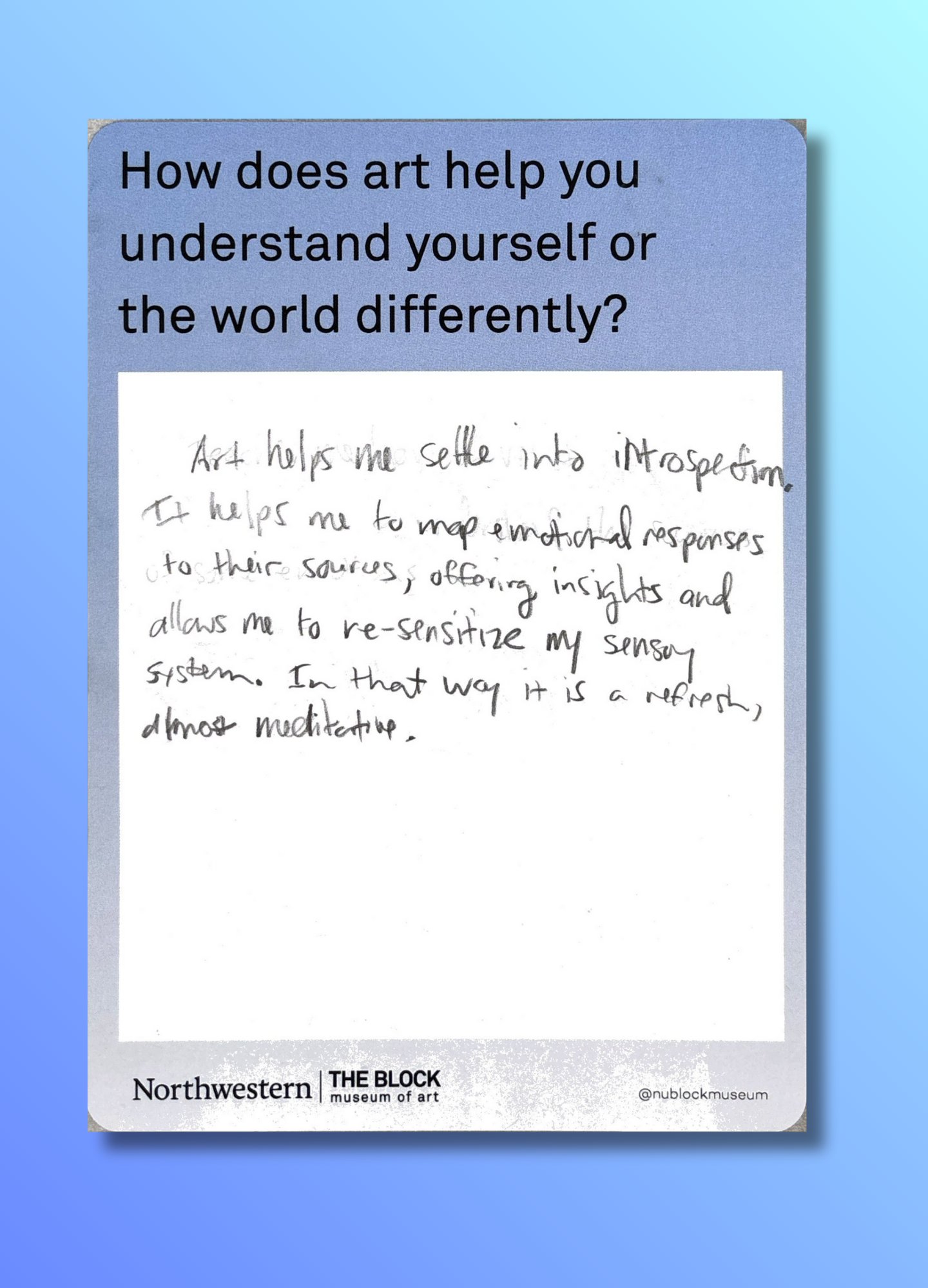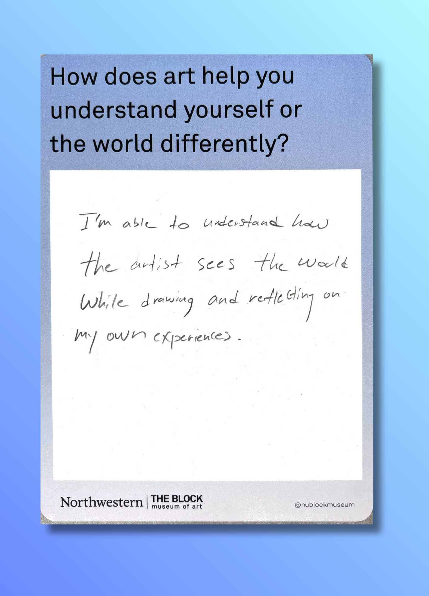 These reflections, gathered on the museum’s response wall, offer glimpses into how art shapes the ways we understand ourselves and our world.