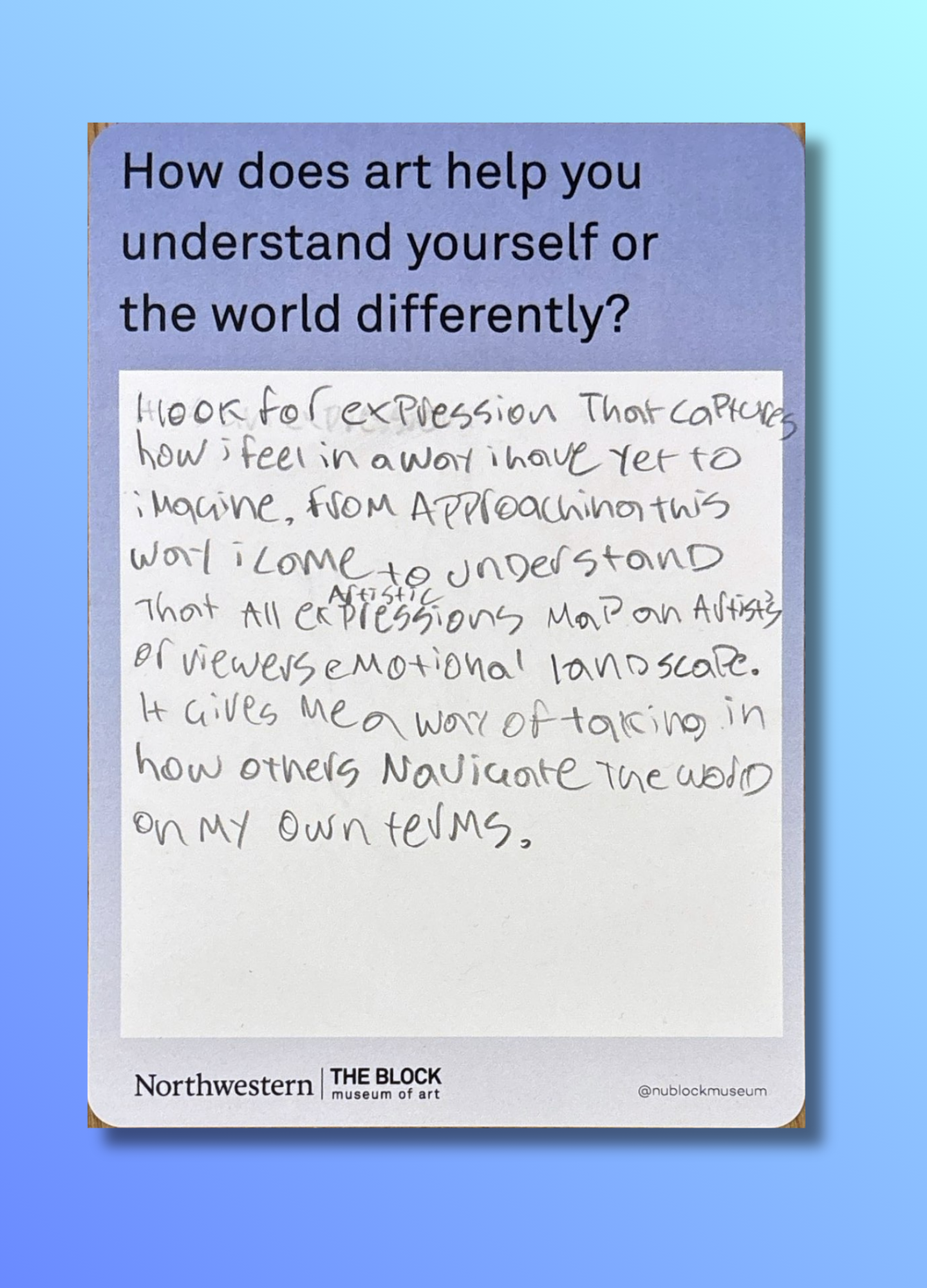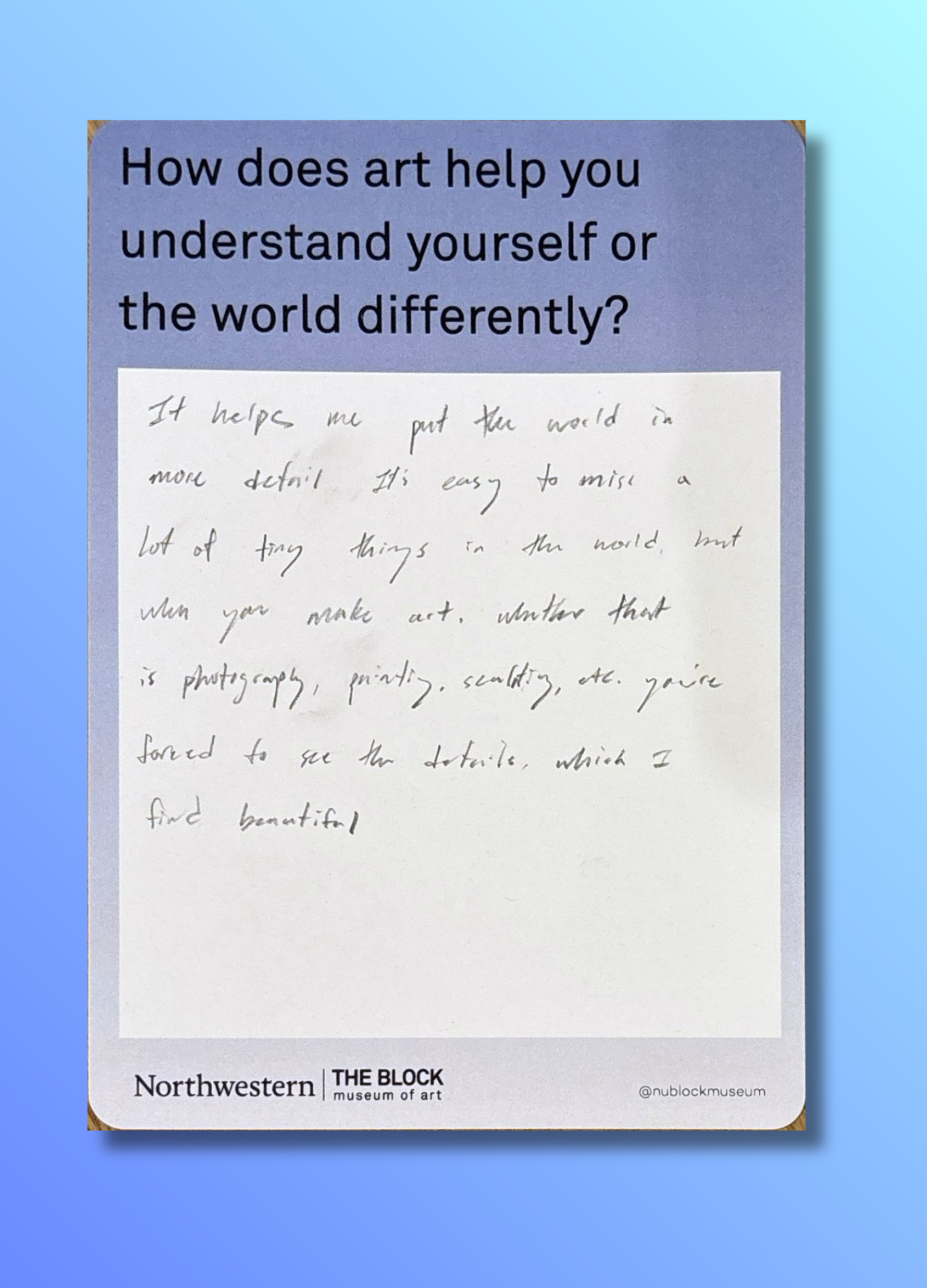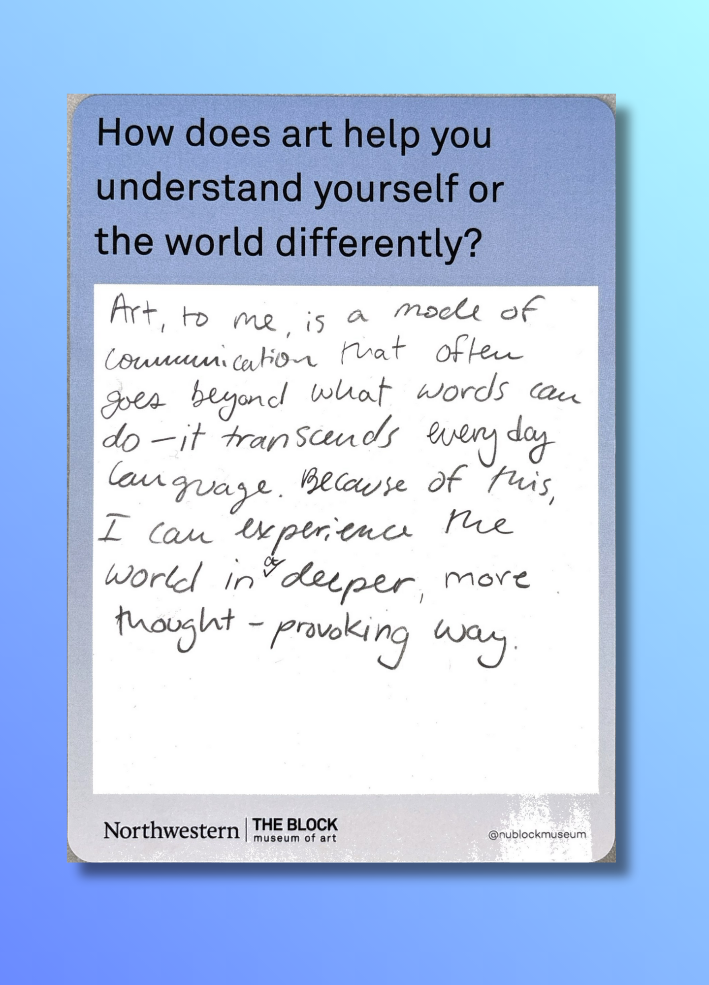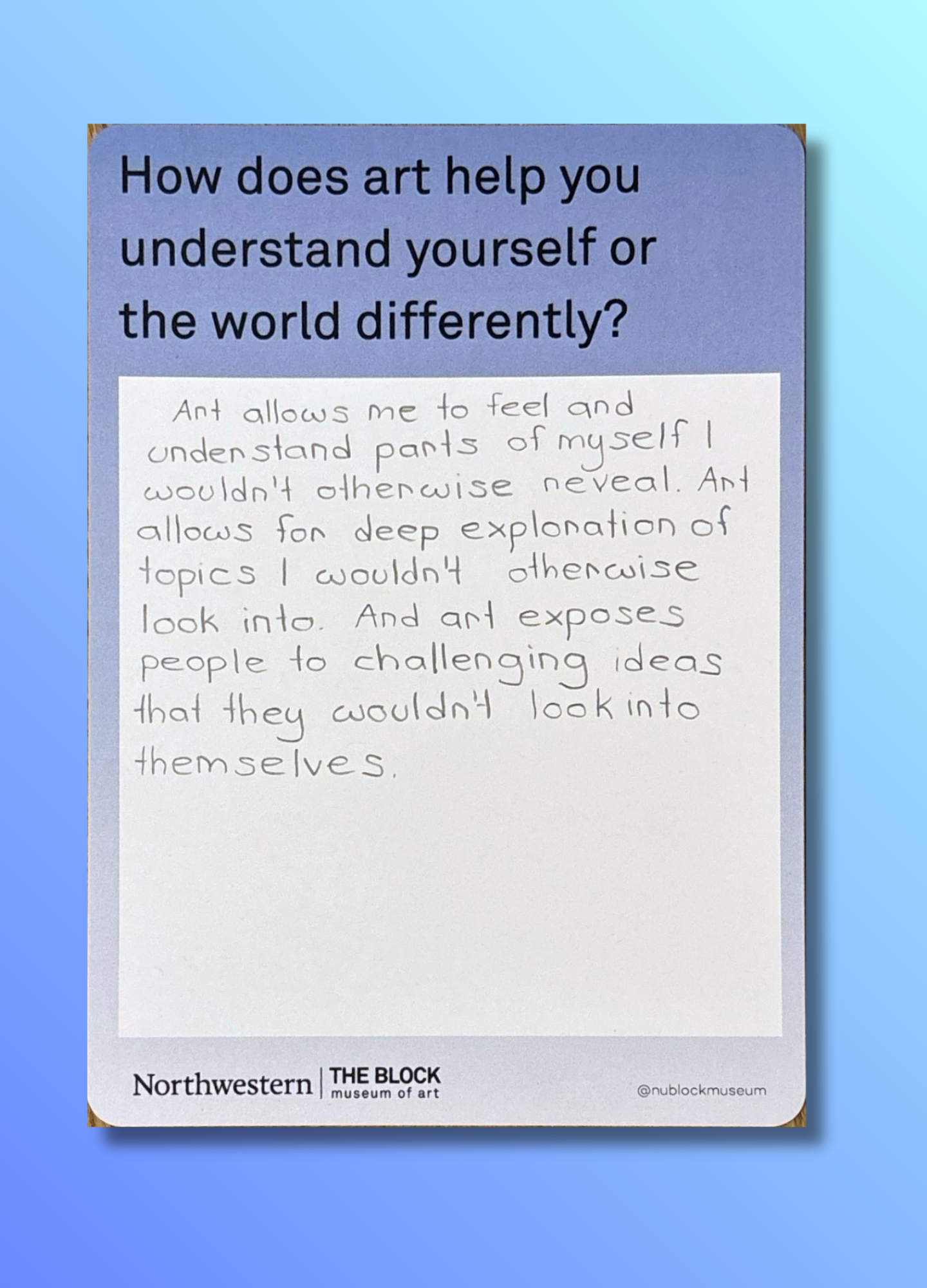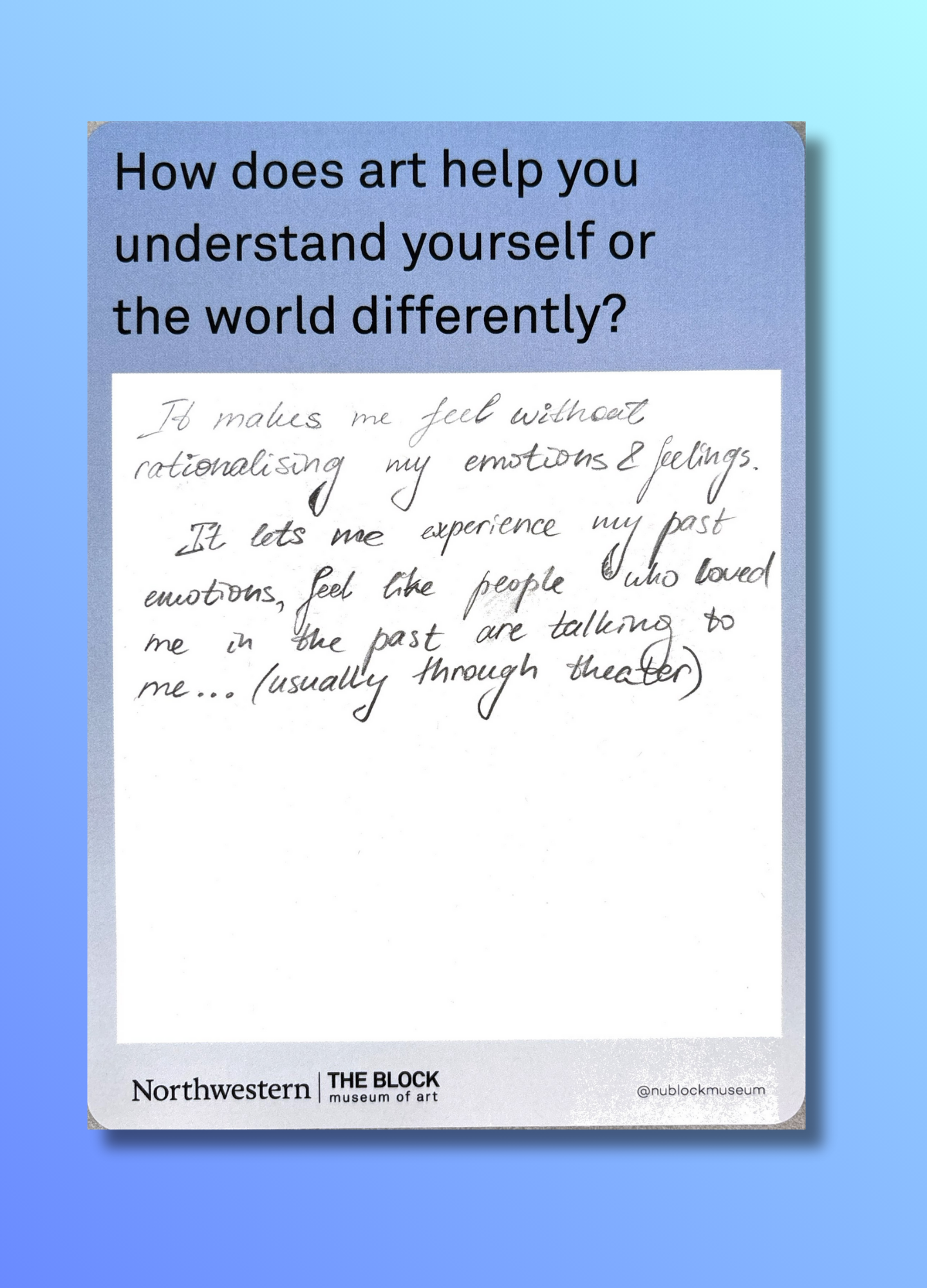 These reflections, gathered on the museum’s response wall, offer glimpses into how art shapes the ways we understand ourselves and our world.