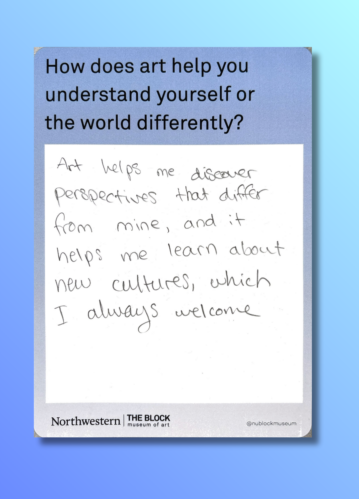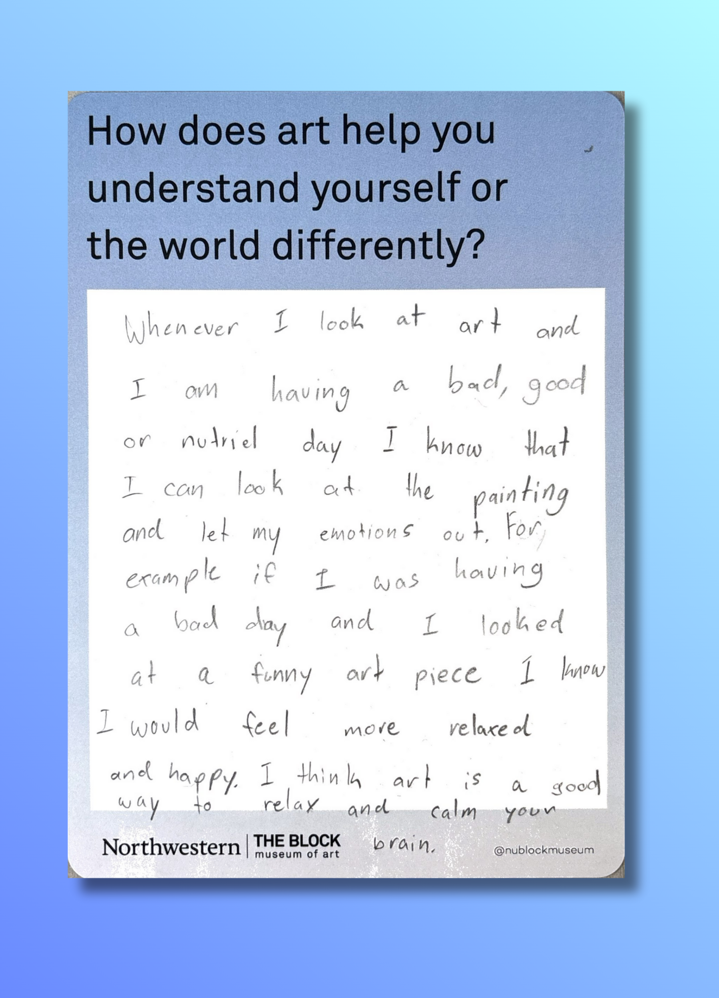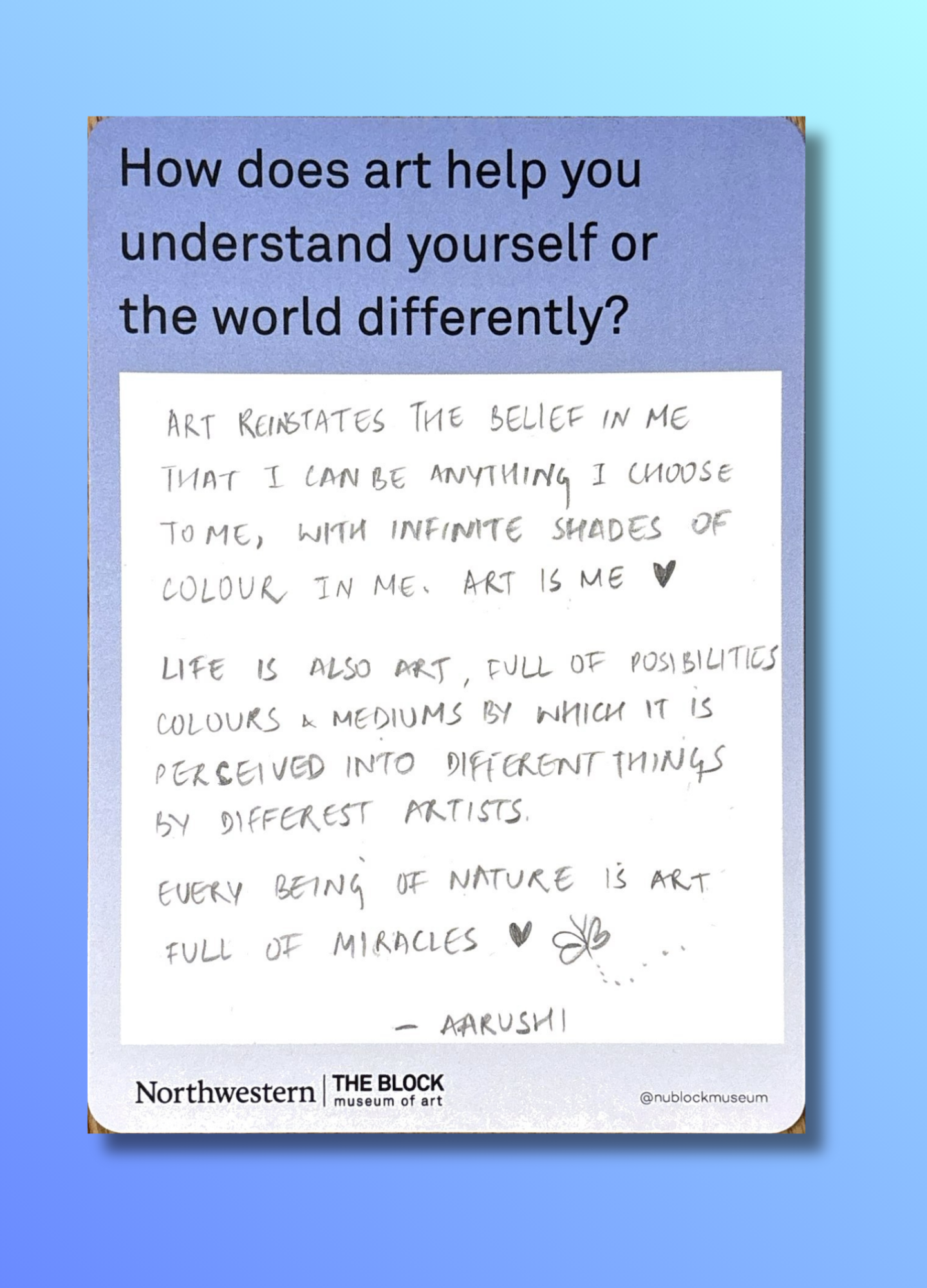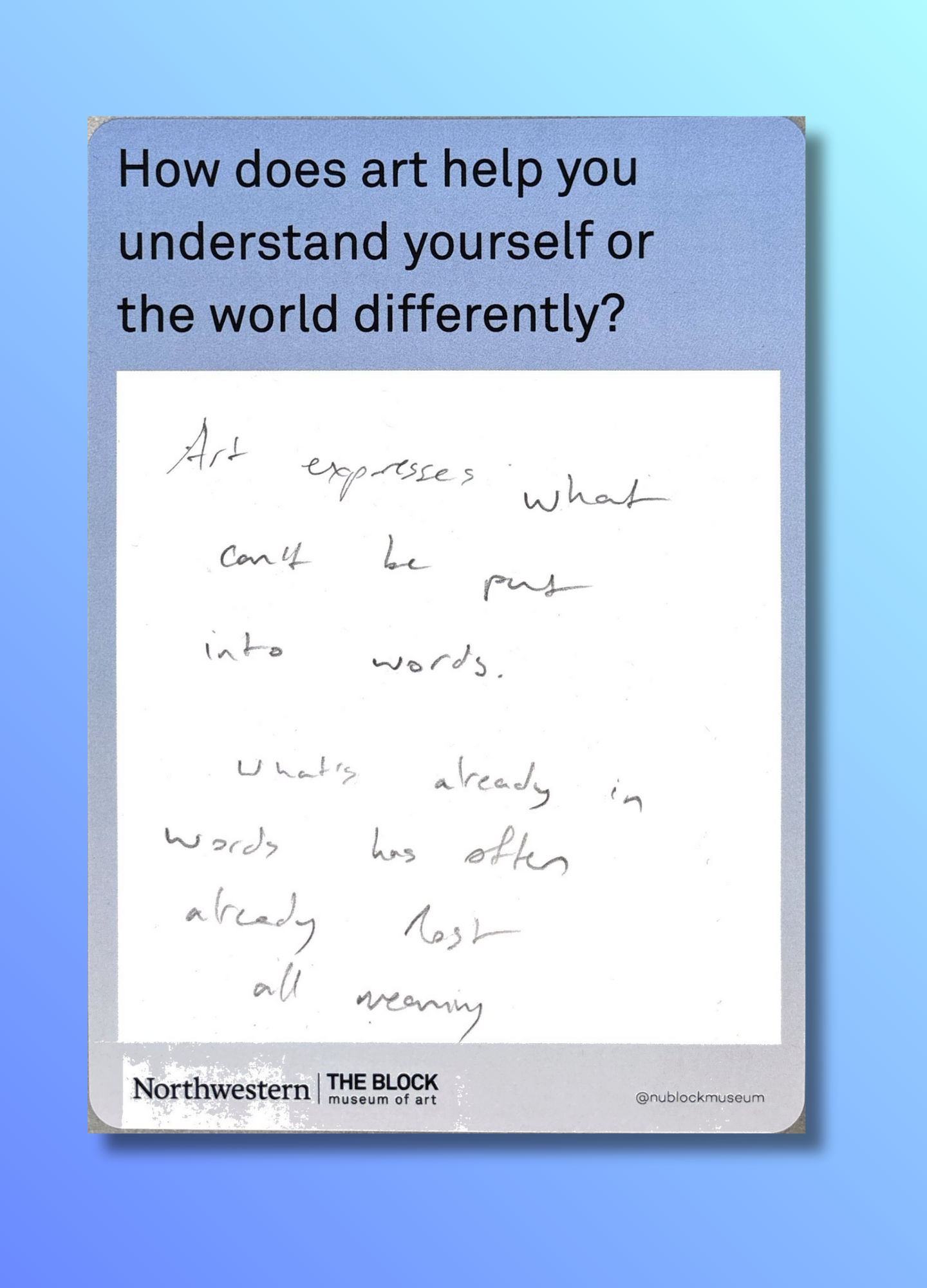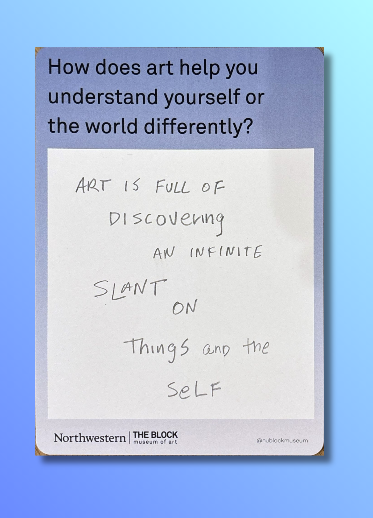 These reflections, gathered on the museum’s response wall, offer glimpses into how art shapes the ways we understand ourselves and our world.