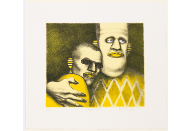 Reproductions of artworks from the Block Museum collection invite visitors to reflect on how art holds us through moments of crisis. These works capture gestures that we may have taken for granted prior to the pandemic, but we have missed dearly. The selection of works was guided by themes of self-care, self-authorship, and community. It also explores how subtle moments with others prepare and carry us on our journeys. Within these works, people hold each other through life changes, create spaces of sustenance, and raise their hands to declare “I am still here.” Behold, Be Held is a meditation and a prompt, asking: What are you most in need of right now?
