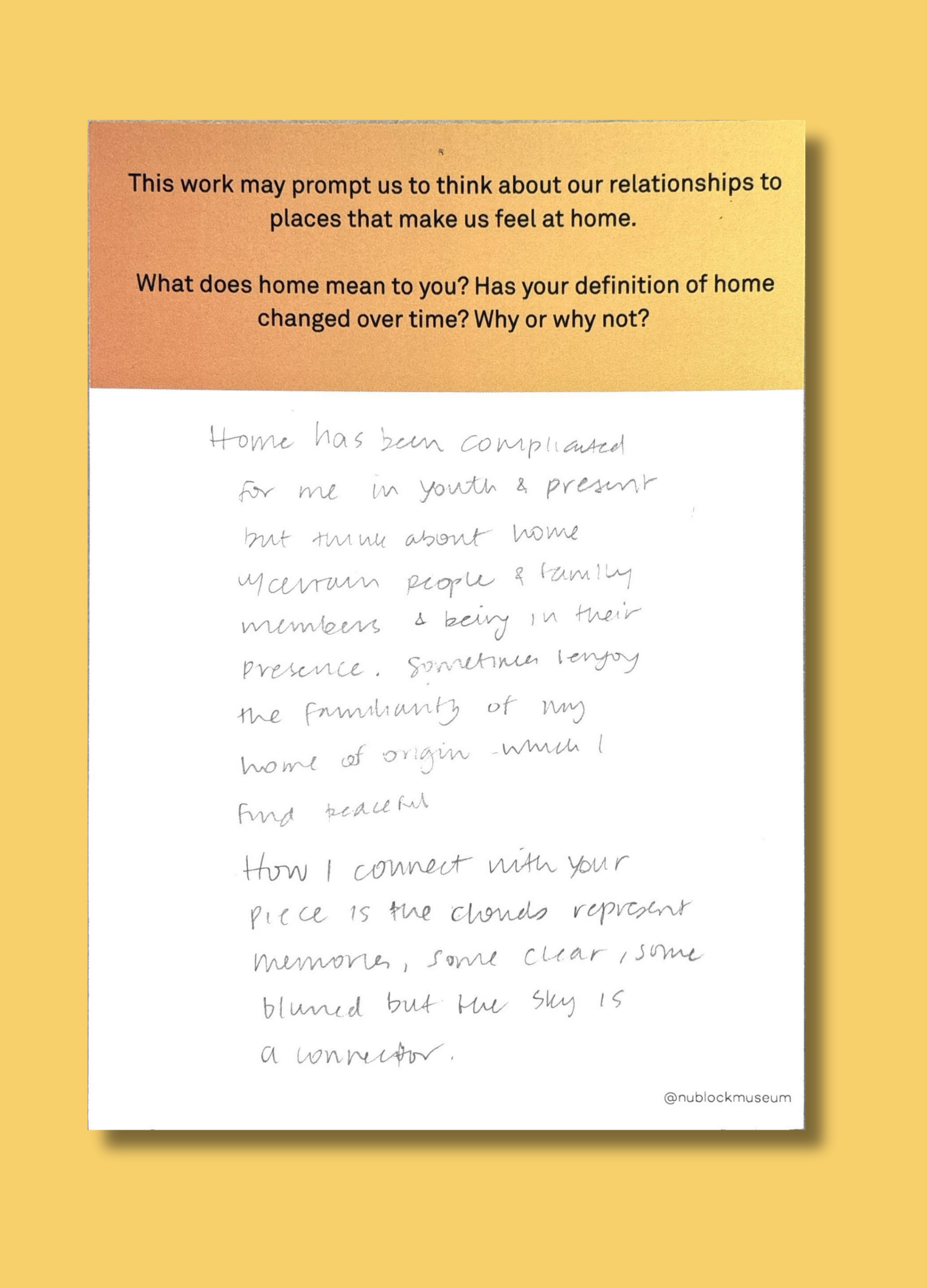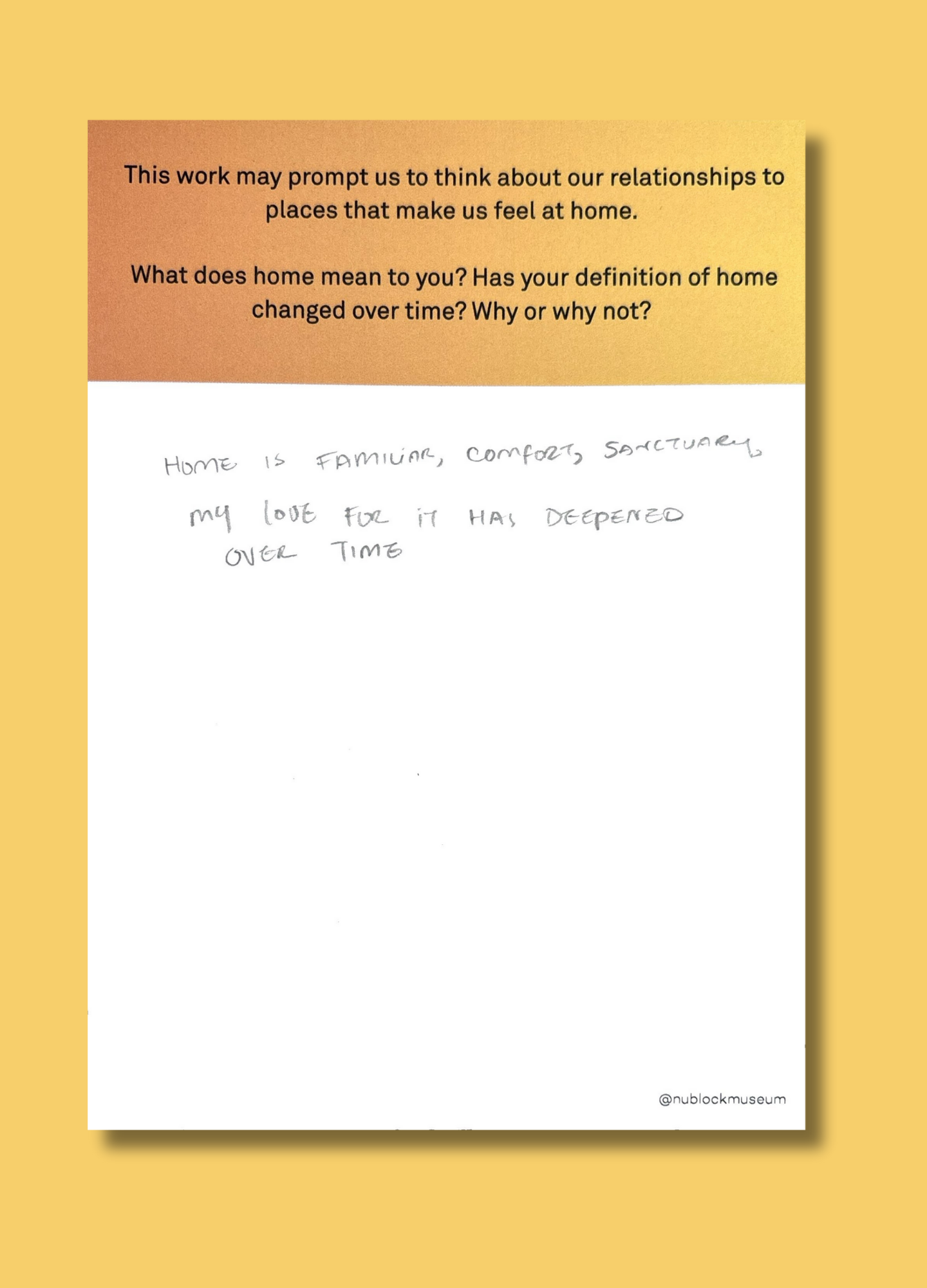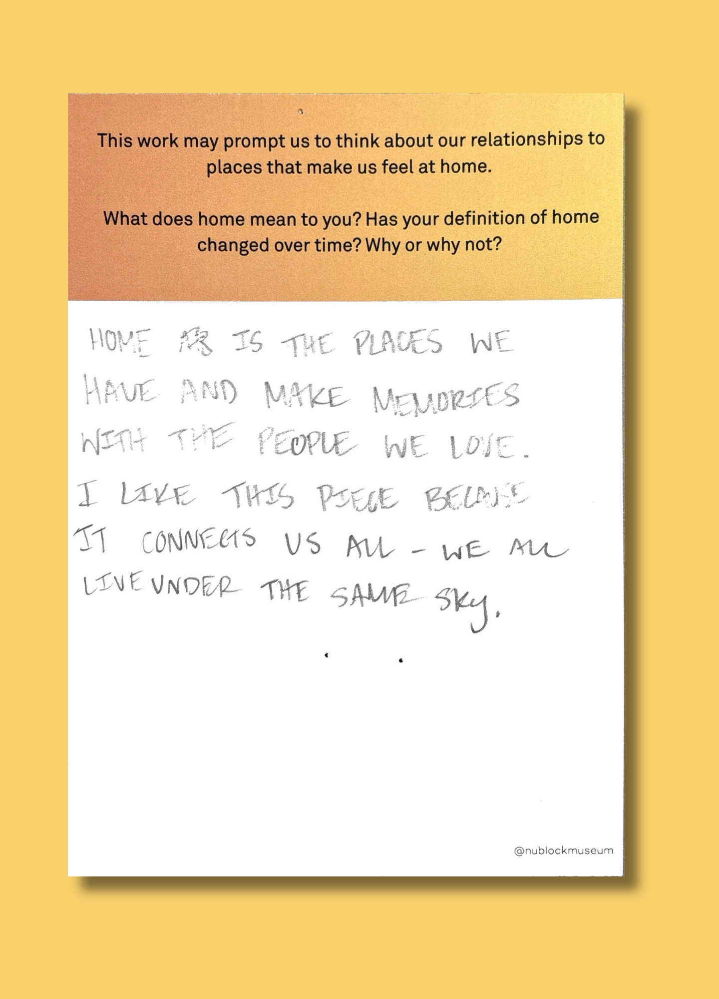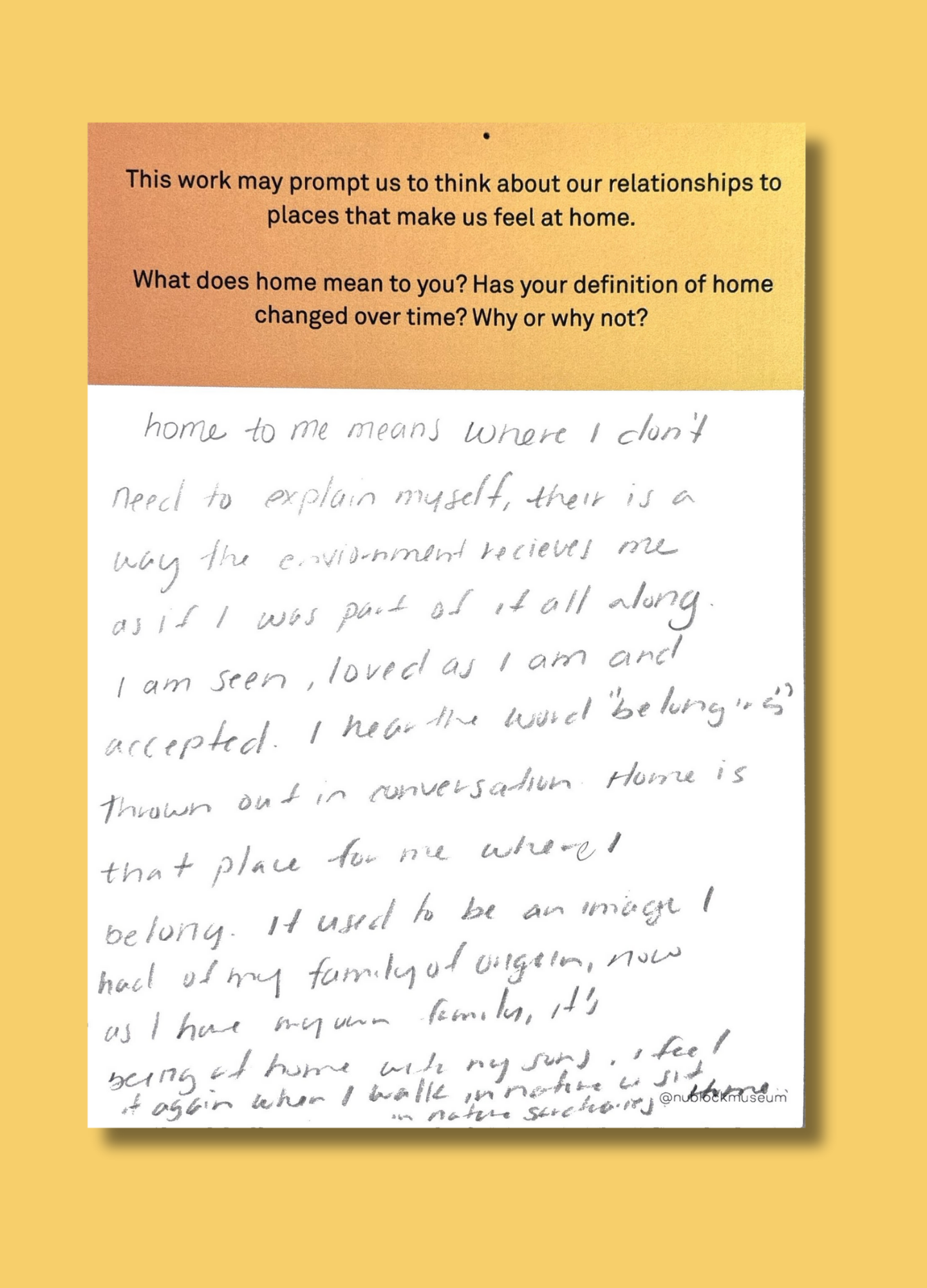 This work may prompt us to think about our relationships to places that make us feel at home.
